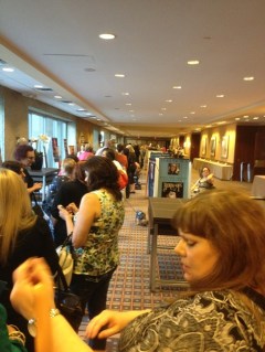 I’ll try to do a better job of taking pictures tomorrow. It was an incredible day. I have a HUGE amount of swag and free books. I can’t wait to dive into it all. It almost makes me want to skip tomorrow so I can just sit and read. Except that tomorrow I get to meet some favorite authors in the RT Cafe (Anne Calhoun, Delphine Dryden, Ruthie Knox, Cara McKenna, and Heidi Cullinan I’m coming to see you!) I’m also excited about the Erotica Author Chat (Maya Banks, Jaci Burton, Lauren Dane, and Sylvia Day!), the All Tied Up: BDSM Romance panel, and the Romance Pride: Over the Rainbow Party.