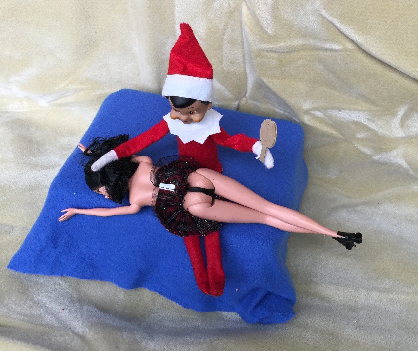 “Someone’s on the Naughty List! Lay down over my knees here and take your paddling and I won’t mention it to Santa!”