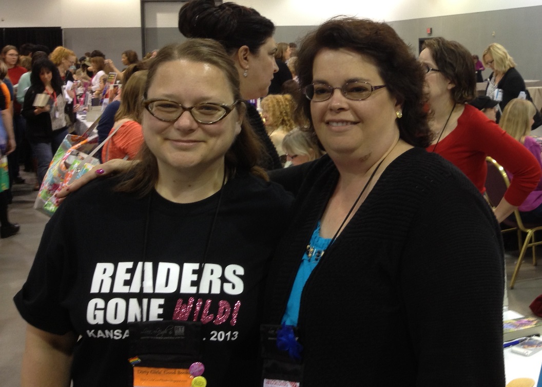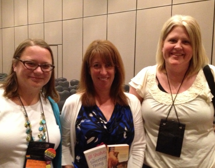Lauren Dane writes some of my all time favorites, the Brown Siblings Series and the Delicious series. And now that I’ve seen her in person? I want to dress like her! She’s my new fashion icon.Here’s Kay and I with Jill Shalvis. She and Helen Kay Dimon were a hoot!I didn’t get a picture of me with Jaci Burton, but here she is with Lauren Dane. I like Jaci’s books, but I didn’t know how funny she was in person. She took the time to appear on a lot of panels that were very entertaining!and then there was the author I was most looking forward to meeting and taking a picture with – Shannon Stacey! I was so excited to meet her that I saw her 3 times (the Blogger pre-con, the Carina Press blogger/librarian lunch, and at the book fair) and spoke to her each time and never took a picture. So, at the book fair I turned back around, bringing a friend and took this picture. Finally!